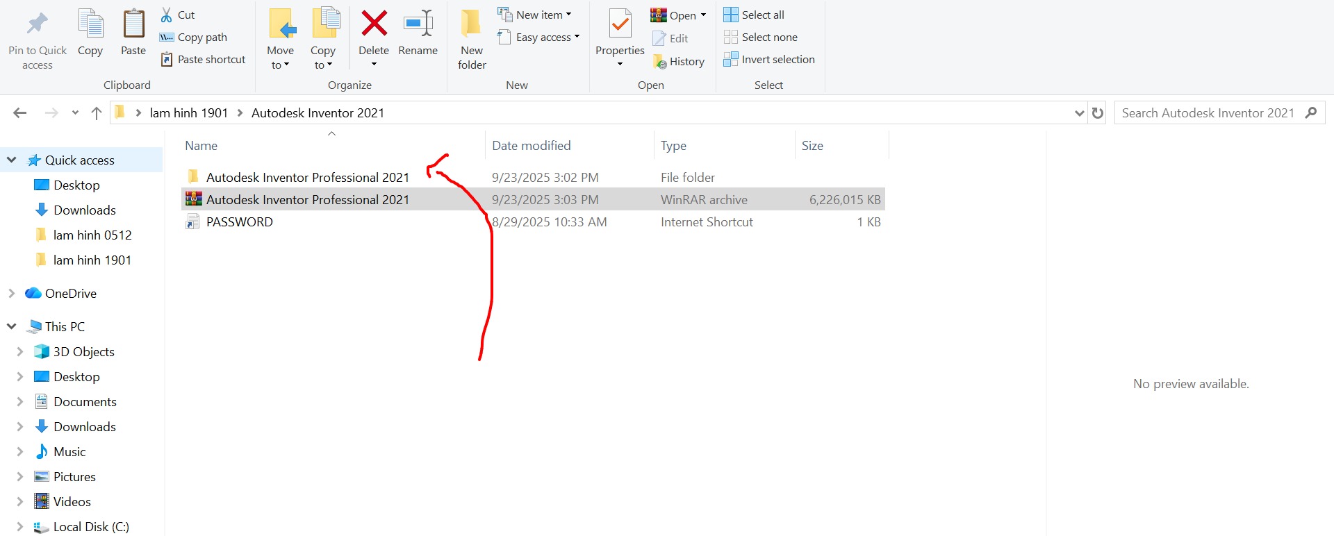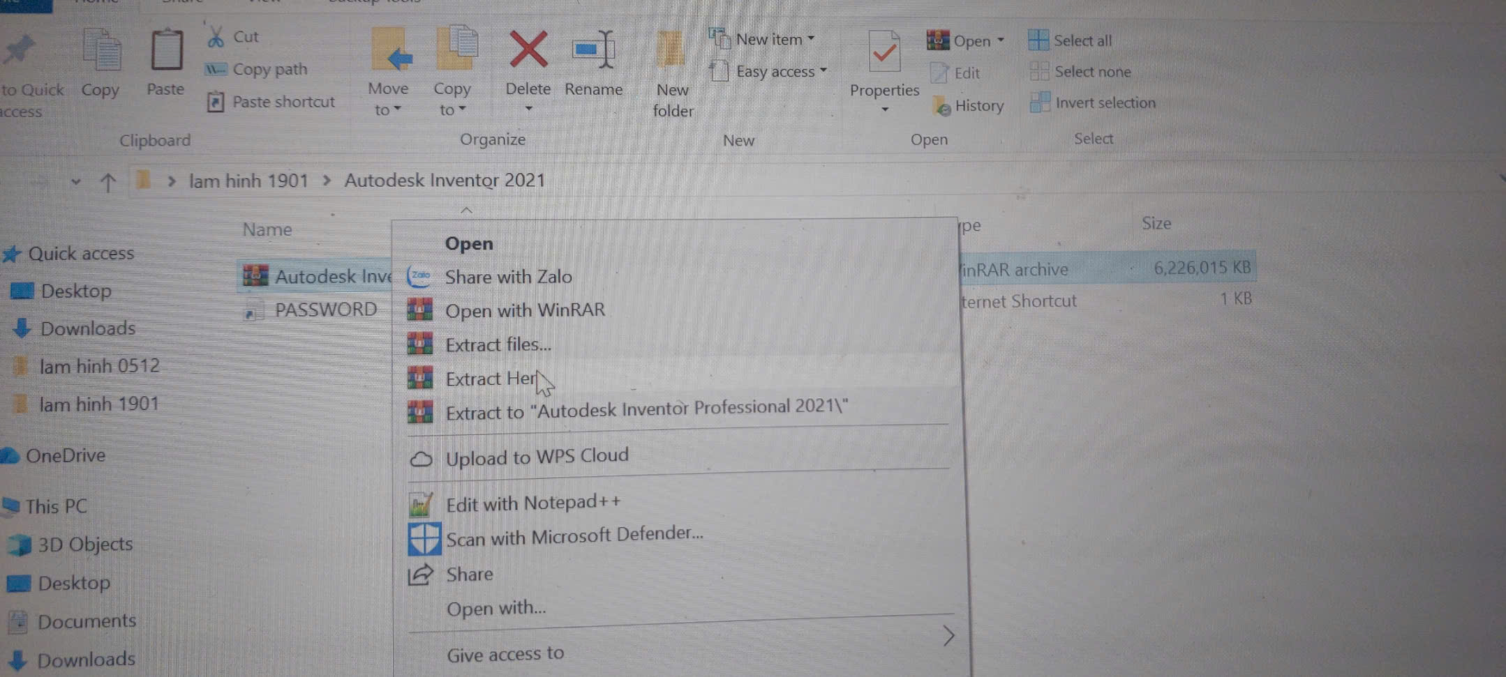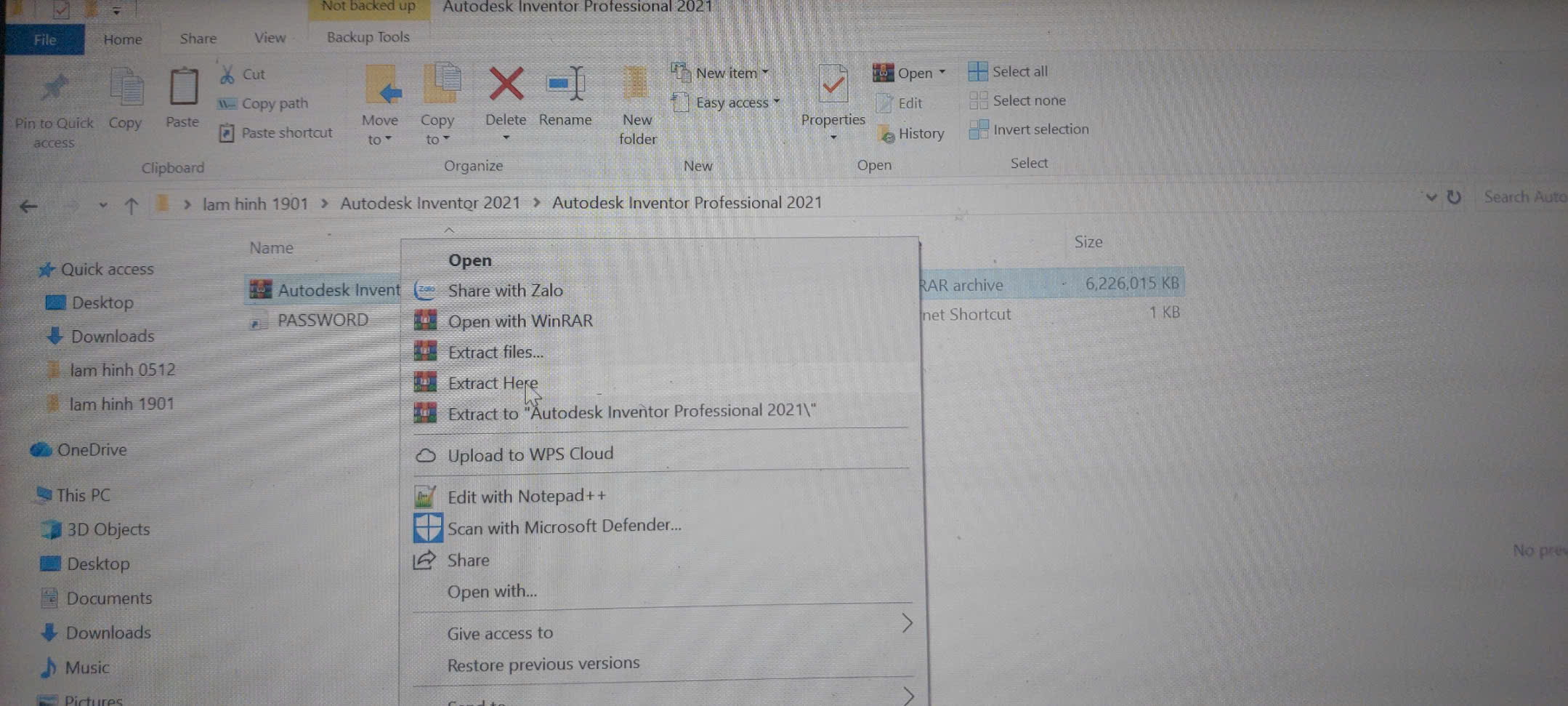 Bước 1: Giải nén bộ cài phần mềm Inventor 2021.