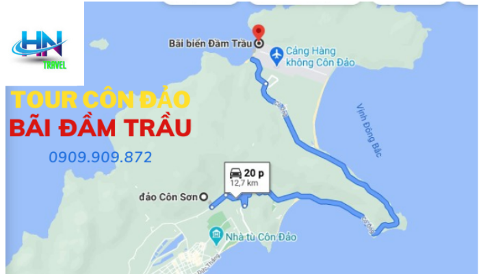 Quảng đường di chuyển từ trung tâm Côn Đảo đến Bãi Đầm Trầu là khoảng gần 13km. Nếu du khách đi từ sân bay thì có thể ra tới bãi khoảng 5-10 phút. Nếu du khách di chuyển từ trung tâm có thể đi bằng phương tiện xe mày hay Taxi khoảng 10-20 phút, đi qua các con đường Nguyễn Chí Thanh, Phan Chu Trinh và Cỏ Ống.