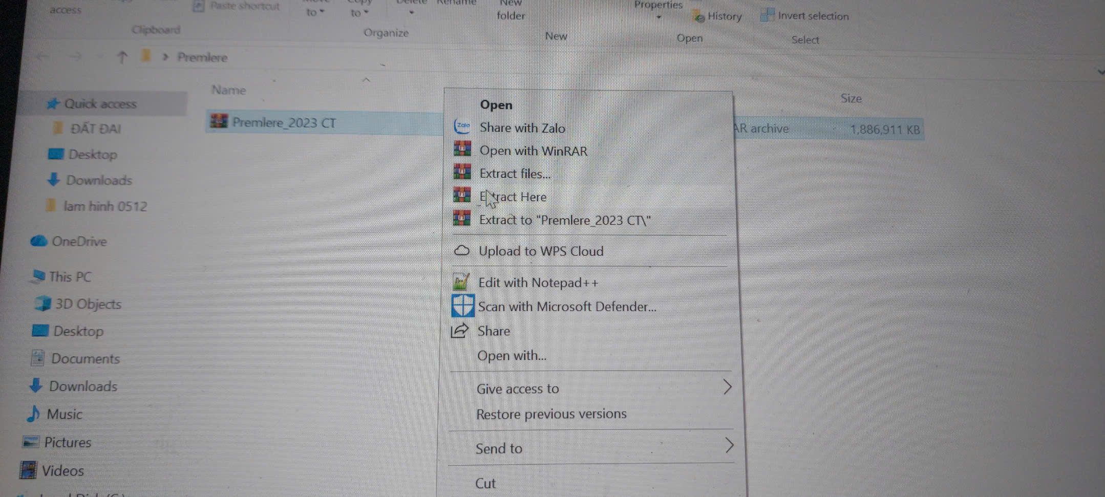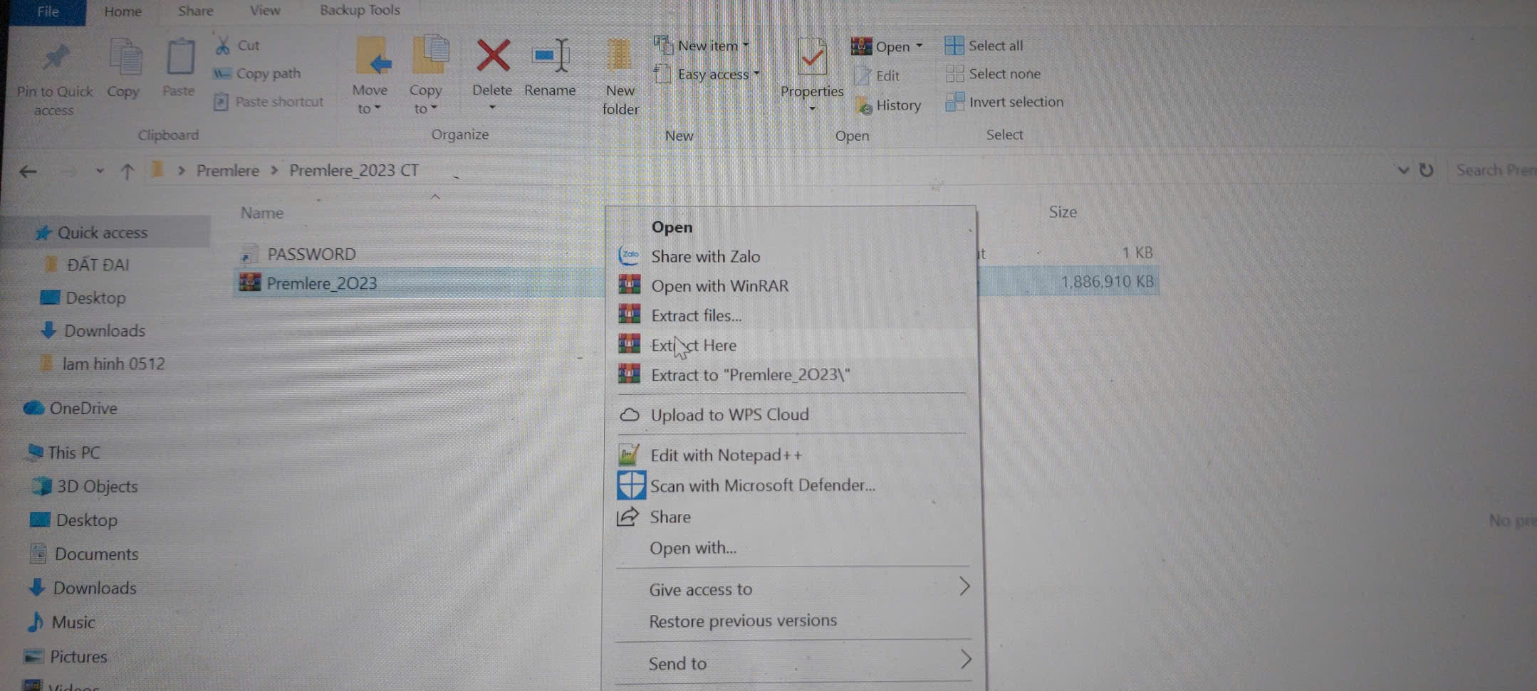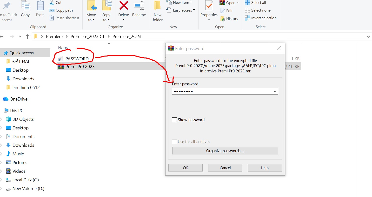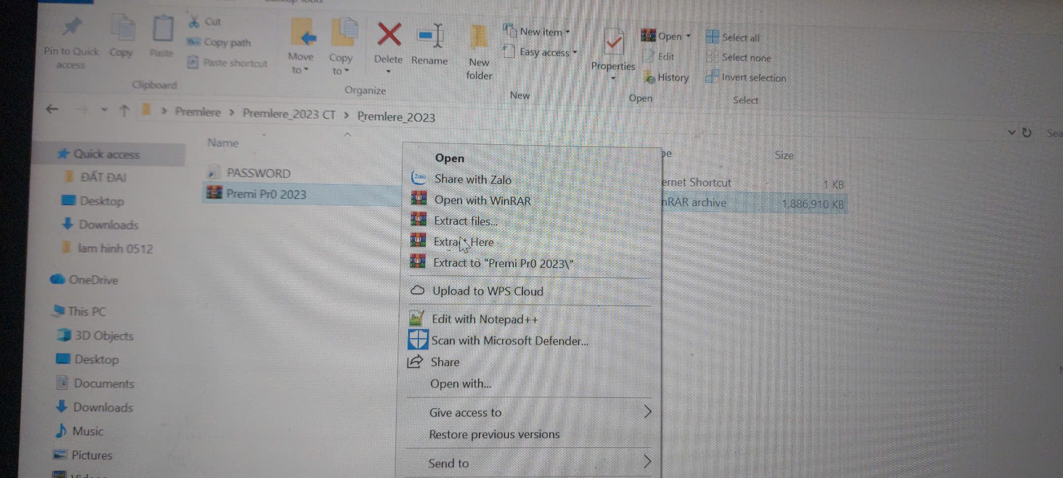 Bước 1: giải nén phần mềm Premiere pro 2023 từ link download bài viết