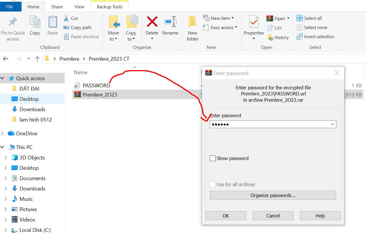 Bước 6: Bạn điên pass word lấy từ file hướng dẫn ( mở ra thất liền)