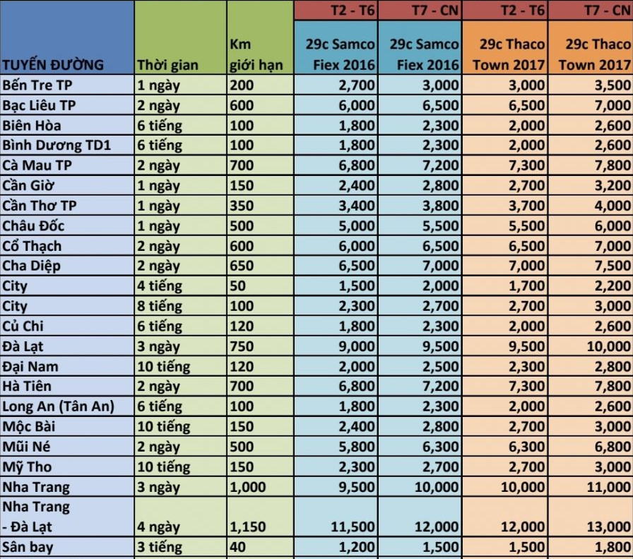 Trên đây là bãng giá tham khảo các dòng xe du lịch 29 chỗ mà du lịch Chiêu tour cho thuê trên địa bàn quận 3 và các quân lân cận . Giá xe có thể thay đổi theo giá thị trường xăng dầu , phí cầu đường , tài xế , bến bãi …