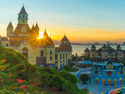 Hoặc options đoàn tự chọn thêm : tham quan VinWonder Nha Trang (chi phí tự túc) khu vui chơi giải trí tổng hợp tại thành phố biển Nha Trang, nổi tiếng với các trò chơi thú vị, công viên nước, khu vườn hoa và nhiều hoạt động giải trí khác. Du khách sẽ được tham gia vào các trò chơi mạo hiểm, thư giãn tại bãi biển nhân tạo, thưởng thức ẩm thực đa dạng và mua sắm tại các cửa hàng lớn. Vinpearlland Nha Trang là điểm đến lý tưởng cho cả gia đình và nhóm bạn thưởng ngoạn và tận hưởng những khoảnh khắc vui vẻ.