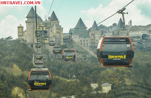 Du khách sẽ trải nghiệm hệ thống Cáp treo một dây dài và hiện đại bậc nhất thế giới để đến với Bà Nà Hills . Ngồi trên Cabin, quý khách phải thốt lên rằng thiên nhiên mang đến những thay đổi rất nhiều khi từ đồng bằng lên đến đỉnh núi Chúa.