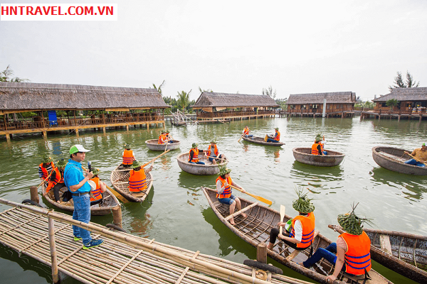 Đến bến tàu, quý khách trải nghiệm cảm giác đi thuyền thúng và tham quan rừng dừa để trải nghiệm cảm giác lênh đênh trên sông nước như ở miền Tây, hệ sinh thái đa dạng và nhiều loài động vật đặc trưng vùng sông nước, nhiều hoạt động đánh bắt cá bằng cách bủa lưới ven sông và những món quà làm bằng tay từ lá dừa nước