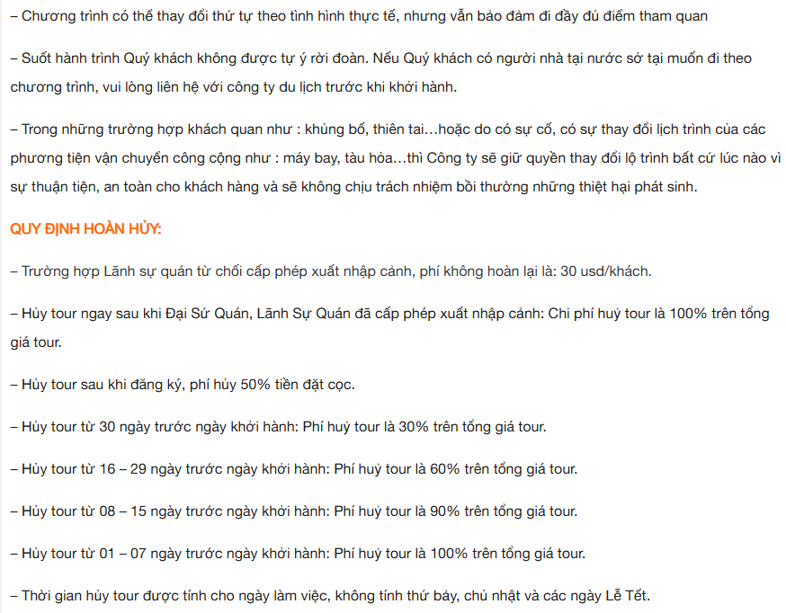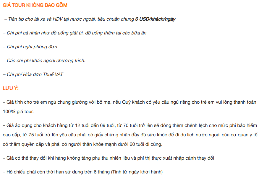 LỊCH TRÌNH CHI TIẾT TOUR 7N6Đ