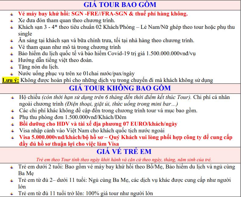 BẢNG BÁO GIÁ KHÁCH ĐOÀN TOUR CHÂU ÂU 9N8Đ