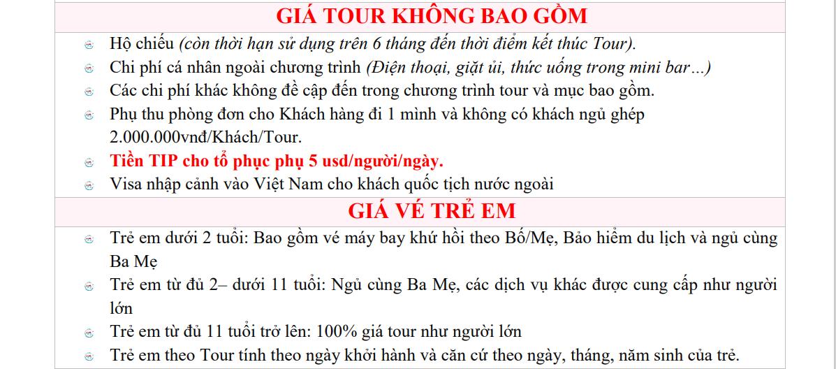TRẺ EM (2-11 tuổi) : 7.190.000 vnđ/vé