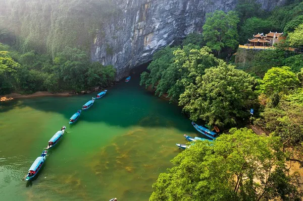 Sau bữa trưa, đoàn ngồi thuyền ngược dòng sông Son để khám phá Động Phong Nha kỳ vĩ, một kiệt tác thiên nhiên ban tặng cho Quảng Bình. Nơi đây, sự hòa quyện giữa rừng nguyên sinh và sông Son, cùng với động khô và động nước, tạo nên một bức tranh thủy mặc tuyệt đẹp. Đây là một trong những vùng đá vôi nhiệt đới cổ đại lớn nhất thế giới, rộng hơn 200.000 ha, với hệ thống hơn 300 hang động lớn nhỏ, ẩn chứa nhiều điều kỳ lạ và hấp dẫn. Khám phá Hang Bi Ký, Cô Tiên và Cung Đình dưới lòng núi, nơi có con sông ngầm chảy từ Lào sang.