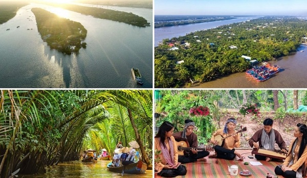- Ngược dòng sông Tiền tham quan 4 cồn Long – Lân – Quy – Phụng nổi tiếng với hệ sinh thái xanh tươi, vườn cây ăn trái trĩu quả và nhiều hoạt động trải nghiệm dân dã.