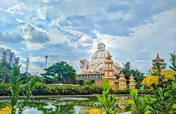 - Chùa Vĩnh Tràng nổi bật với kiến trúc kết hợp giữa Á và Âu, cùng tượng Phật Di Lặc cao lớn nổi bật giữa không gian thanh tịnh.