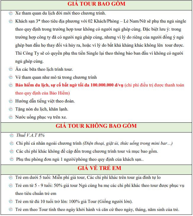 GIÁ TOUR TRỌN GÓI (80 KHÁCH TRỞ LÊN)